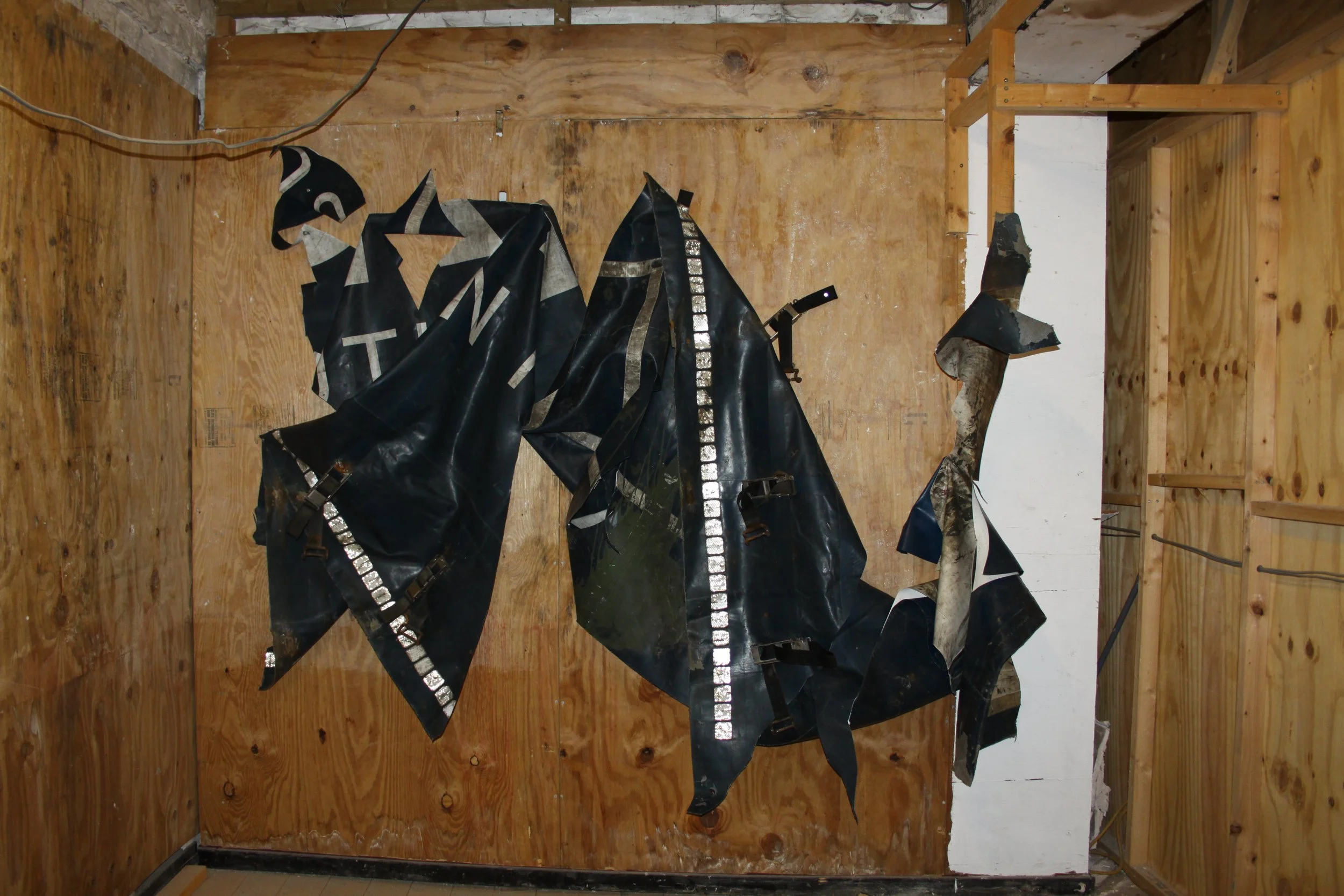 This work, the subject of Evans’ masters thesis ‘The space between us’, is in essence an exploration of desires risk. The work serves as both a physical and conceptual attempt to realise that which she desires, through material transformation and poetic introspection. The piece personifies the object of desire, aka the side of a lorry, and delves into the artist's relationship with her materials, treating them as lovers who, once consumed, are left behind. The work unfolds as a moment in time - its impermanent nature a mirror to the desire she feels. Once made, this work was never the same, a pained moment of beauty grounded in inevitable loss.